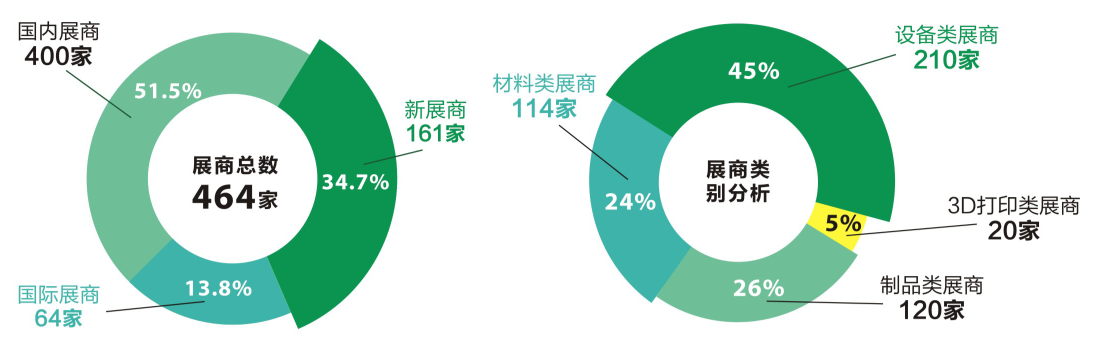 展商總數:464家(其中國內展商400家,國際展商64家,新展商161家)