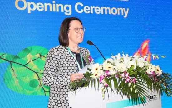 慕尼黑博覽集團(tuán)展覽總監(jiān)Katharina Schlegel女士代表主辦方進(jìn)行開幕致辭。她榮幸的表示本次中國環(huán)博會(huì)廣州展吸引了418家企業(yè),參展商數(shù)量在一年內(nèi)就翻了一番,今年的展覽面積近3萬平米,比去年增加了58%。這些數(shù)字都表明,現(xiàn)在中國環(huán)博會(huì)廣州展已經(jīng)成為華南地區(qū)環(huán)保技術(shù)領(lǐng)先的行業(yè)盛會(huì)。