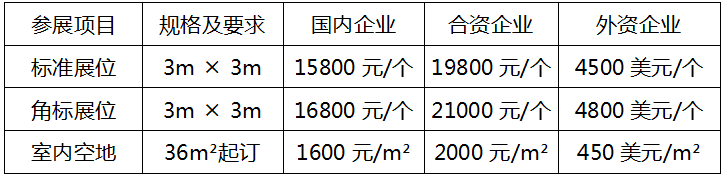 A.標(biāo)準(zhǔn)展位配置:中英文楣板、日光燈兩盞、隔板(高度250cm,可用高度246cm)、洽談桌一張、椅子兩把、可容400W/220V電源插座一個及地毯;