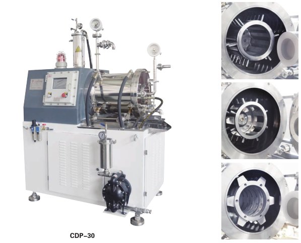 CDP系列納米砂磨機采納歐洲先進設計標準,流量大,控溫能力好,能量轉(zhuǎn)化率高,達成納米級研磨時粒度分布范圍窄。