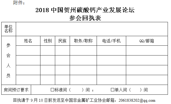 中國碳酸鈣產業快速發展的同時,也面臨著產業集中度低、企業規模小、資源浪費、環境污染、產品單一、技術與裝備急需提升等諸多問題與挑戰。為了全面貫徹黨的十九大精神,落實“創新、協調、綠色、開放、共享”發展理念,進一步推進我國碳酸鈣產業供給側結構性改革,促進碳酸鈣產業升級,同時提升賀州碳酸鈣產業影響力,提高企業創新意識,促進賀州市碳酸鈣產業健康、有序、高質量發展。中國非金屬礦工業協會與賀州市人民政府將于2018年9月16日在廣西賀州市共同舉辦“2018中國賀州碳酸鈣產業發展論壇”(預計會議規模200人)。現將會議有關事項通知如下: