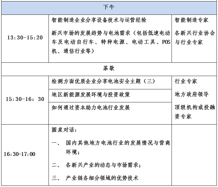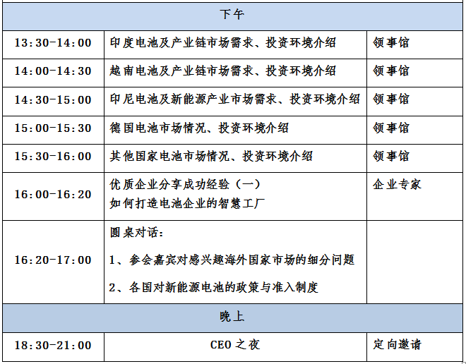 擬邀車廠、電池廠、材料廠:特斯拉、廣汽新能源、比亞迪、江淮汽車、小鵬汽車、蔚來汽車、福特汽車、CATL、國軒高科、中航鋰電、力神、振華新能源、創明電池、比克電池、海四達、ATL、欣旺達、孚能、萬向一二三、桑頓新能源、卓能新能源、天勁新能源、鵬輝能源、塔菲爾、億緯、德賽、新宙邦、多氟多、貝特利、天賜、杉杉、星源材質、貝特瑞……