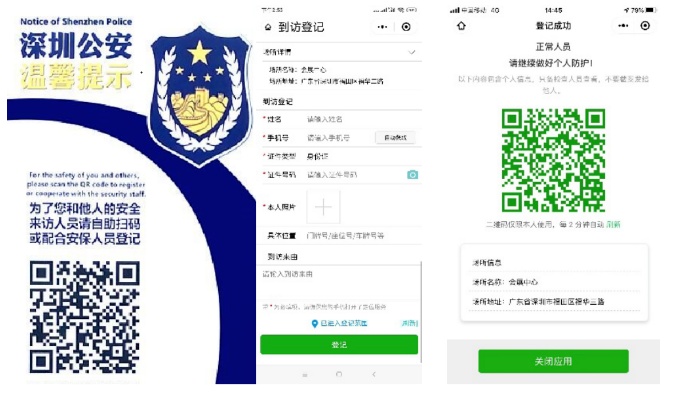 所有進入展館范圍的人員須統一采用“公安登記報備+綠色行程卡+測溫+實名注冊+安檢+測溫+刷驗入場碼”的入場方式,進館人員須進行公安登記報備查驗,出示“綠色行程卡”,合格者須接受體溫測量。體溫合格者(37.3℃以下)進行實名注冊生成“入場碼”,安檢并二次體溫測量,通過閘機刷驗“入場碼”進入展館。