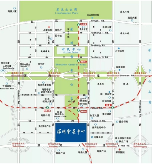 用導航地圖搜索“深圳會展中心北廣場”,沿福華三路進入會展中心出入口。