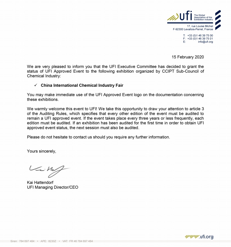 喜訊 | 中國(guó)國(guó)際化工展覽會(huì) (ICIF China)通過(guò)UFI認(rèn)證