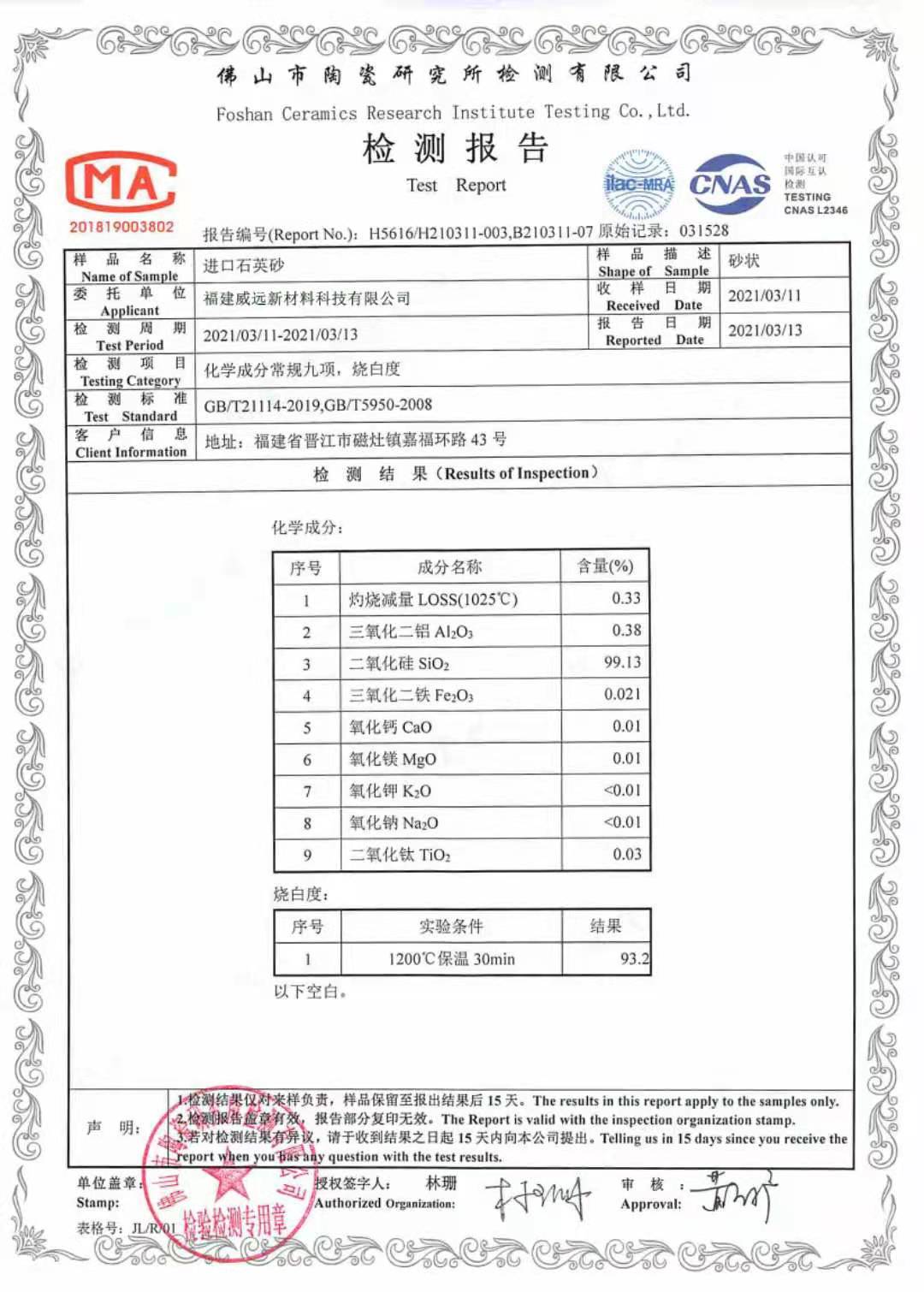 福建威遠(yuǎn)新材料與您相約全國板材用石英砂供需洽談會