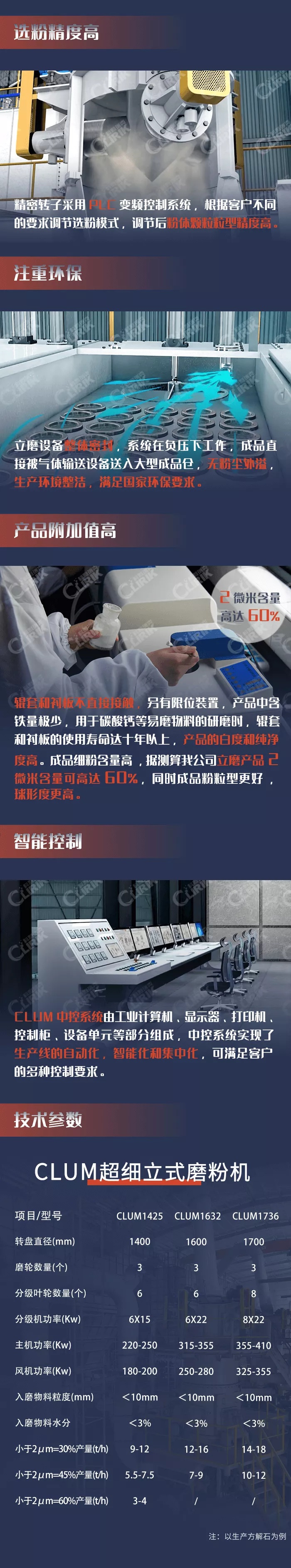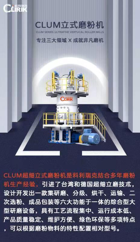 CLUM 系列超微細粉體立式滾輪研磨機是上海科利瑞克機器有限公司以十二年生產超細粉體經驗為依托,吸收德國、臺灣超細立磨技 術,并采用優質的耐磨件,研發出中國國內真正意義上 擁有二次分級技術的磨粉設備。該設備由國內團隊把控,立磨生產的成品細度可達到 400~6000 目。