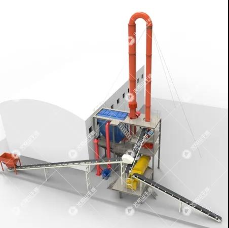 氣料分離式烘干機通過增加物料熱交換面積的方式, 設置了筒體,分別為煙氣通道、物料通道及煙氣回流通道。這樣的設置使每兩個筒之間依次構成了受熱空間。
