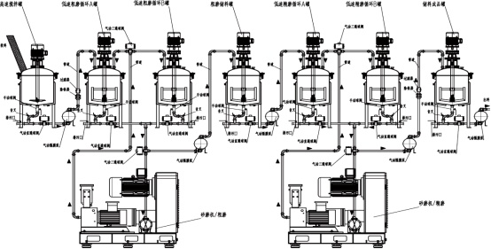 (4)整個作業過程全 密閉控制,有效控制物料純度,同時平臺橋架統一走線走管 ,現場簡潔美觀且便于維護,適用于規模化生產,可根據不同工藝和產量提供不同的配置方案。