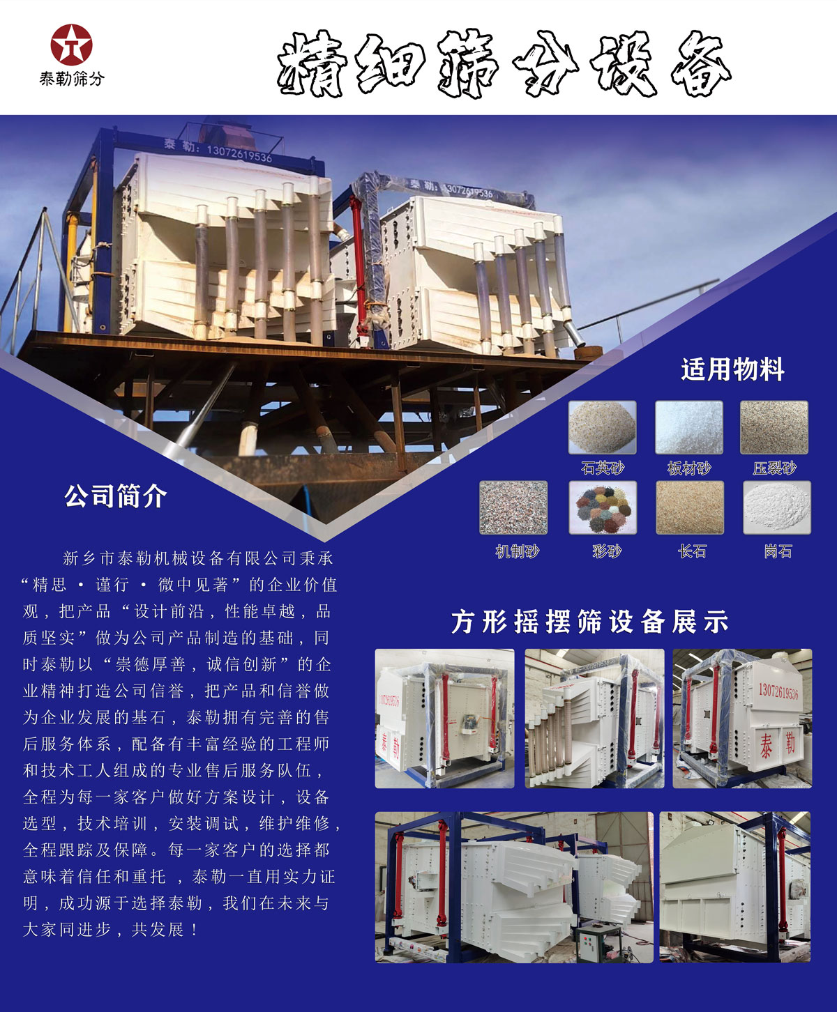 新鄉(xiāng)市鄉(xiāng)市泰勒機械設備有限公司是從事篩分和除鐵領域的設備企業(yè),憑借在篩分和除鐵兩大領域的豐富經(jīng)驗和精湛技術,為客戶提供更適合的系統(tǒng)解決方案,讓客戶的產(chǎn)品生產(chǎn)成本更合理,品質(zhì)更優(yōu)良。泰勒秉承特有的縝密思維和嚴謹作風,將體察行業(yè)前沿的設計,精益求精的技術及嚴格的管理體系,注入到每一款的產(chǎn)品制造中,以確保每一款產(chǎn)品的精良品質(zhì)。同時泰勒又努力突破行業(yè)和自身發(fā)展局限,積極和海外品牌公司深入合作,用心服務每一家客戶。