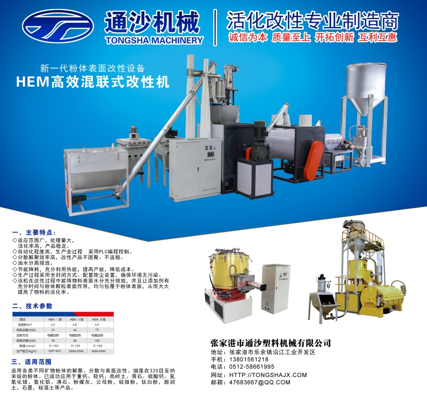 在進行改性、配方等工序后不會影響粉體的原始物理狀態(tài),改性活化效果不受物料粒度大小的影響,活化均勻,節(jié)約改性劑。