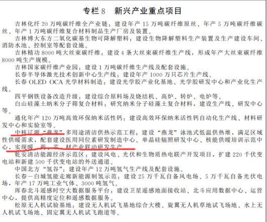 2021年4月1日,《吉林省國民經濟和社會發展第十四個五年規劃和2035年遠景目標綱要》(簡稱《吉林省“十四五”規劃》)下發,提出穩妥實施核能供熱示范工程。