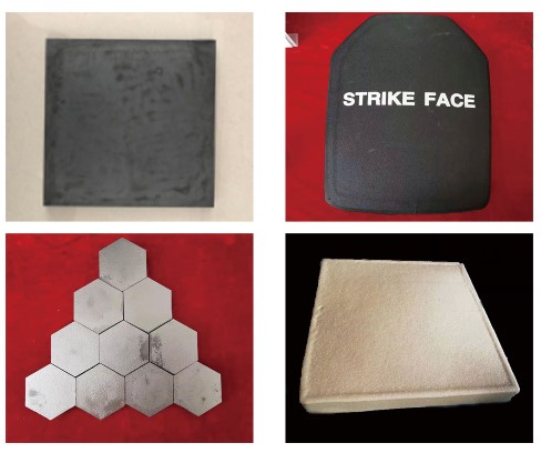 該材料具有密度低(2.48-251g/cm3)、硬度高(HV3100-3200)、防彈等級高等優勢,在保證其硬度高的前提下,強度高達430MPa,增加了復合陶瓷的韌性,高達430MPa,增加了復合陶瓷的韌性。