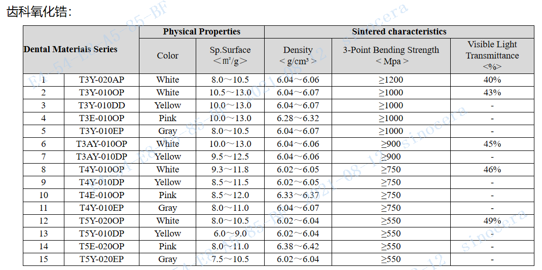 采用水熱合成、膜分離技術提純、高能活化實現離子的包覆與摻雜和造粒技術達到粉體良好的成型性,從而獲得高強度、高透性、實用美觀的納米氧化鋯材料。依靠其強度和優良的抗氧化性、良好的 生物相容性及固體電解質特性被廣泛的應用于光通信用部品、特種結構件、齒科材料及燃料電池、汽車氧傳感器等領域。