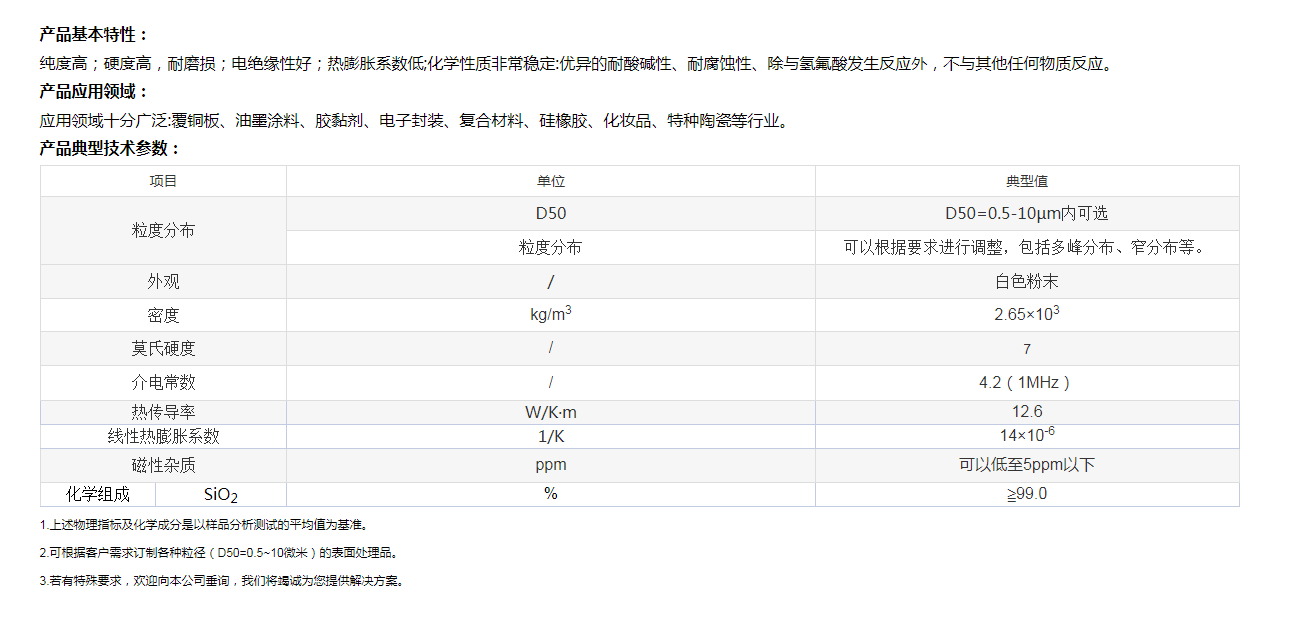 熔融硅微粉是用優(yōu)質(zhì)天然石英原料,通過電熔融變成無定形石英,再經(jīng)過破碎、分揀、超細(xì)研磨、精密分級(jí)、表面處理等各種工藝,生產(chǎn)多種粒徑及其多種表面處理產(chǎn)品,并提供符合行業(yè)應(yīng)用的解決方案。