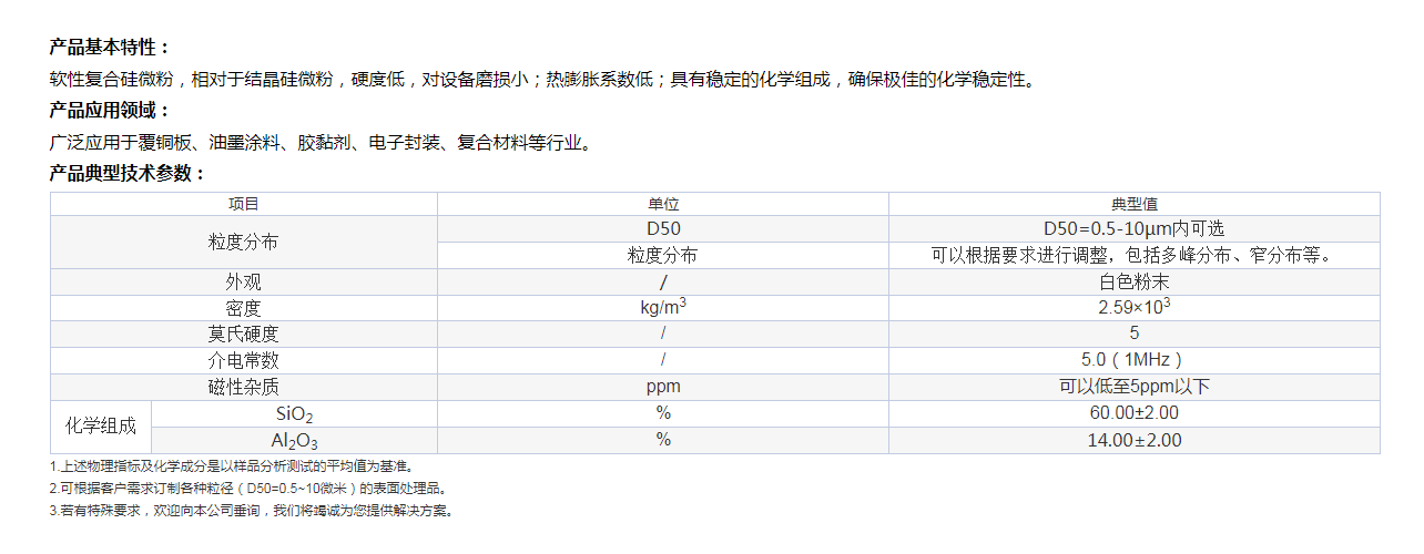 軟性復(fù)合硅微粉是用各種形態(tài)的天然石英和其他無機(jī)非金屬礦物為原料,經(jīng)過復(fù)配、熔融、冷卻、破碎、超細(xì)研磨、精密分級(jí)、表面處理等各種工藝,生產(chǎn)多種粒徑及其多種表面處理產(chǎn)品,并提供符合行業(yè)應(yīng)用的解決方案。