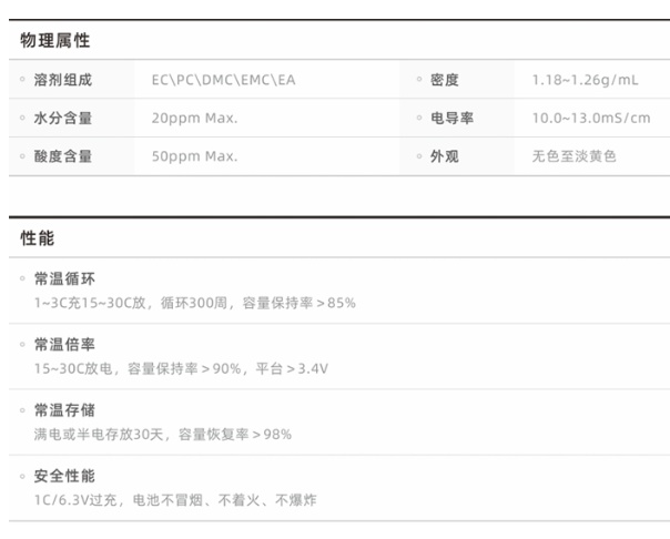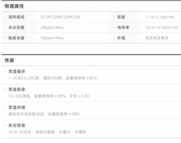 適用于3.85~4.45V鈷酸鋰、三元、磷酸鐵鋰正極搭配石墨/硅負極的軟包、方型、圓柱電池,具備大功率充放電兼顧高溫性能