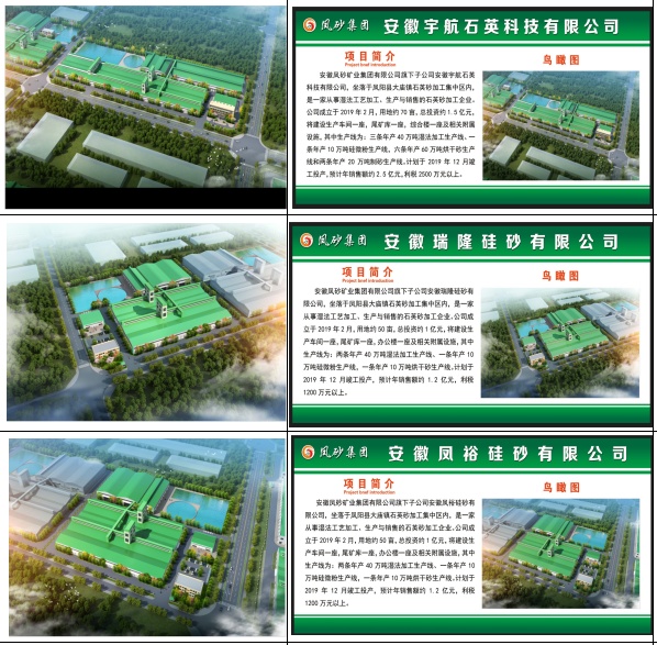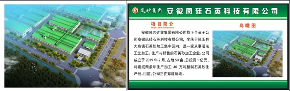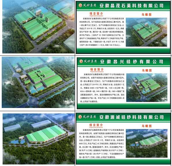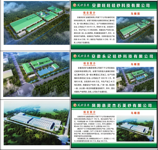 近年來,鳳砂集團在當地政府“綠水青山就是金山銀山”精神的指引下,下大決心、花大力氣,對生產經營中的子公司及在建中的子公司,嚴格按照政府要求,實行科學立項、規范建設、環保達標,并從能評、安評、控評、環評、土地、建設、環保、安監、職業病防控等方面全面接受政府各部門的監管,努力把集團下屬企業打造成石英行業標桿企業,爭取成為鳳陽縣政府對外招商引資的一張名片。
