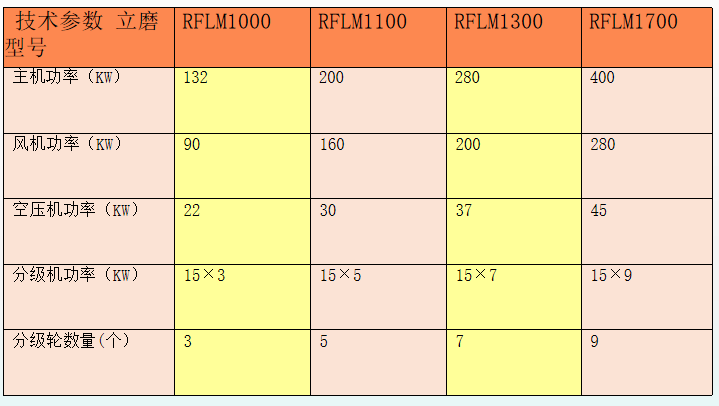 不同型號RFLM系列磨粉機的技術參數(shù)