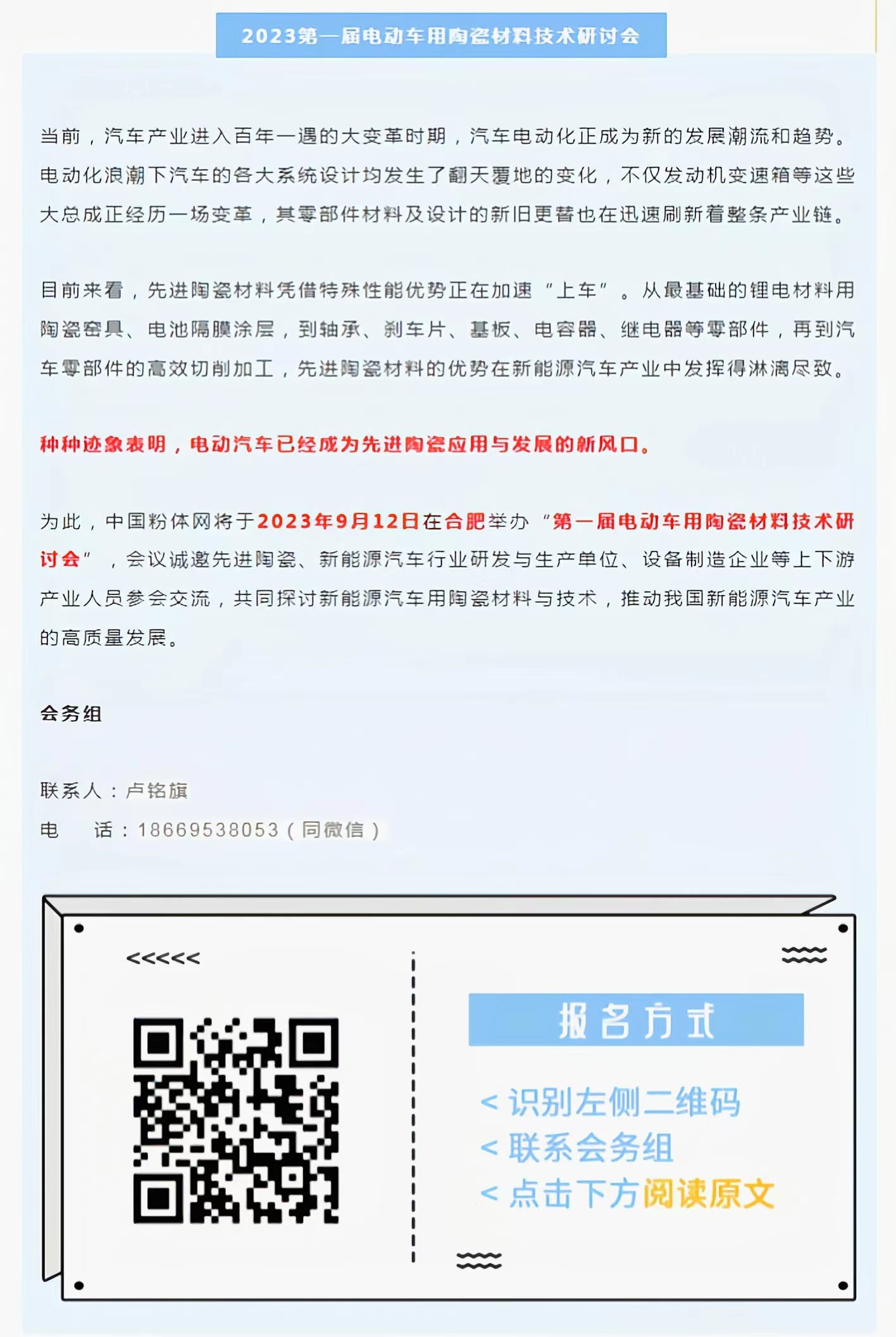霈澤科技確認出席第一屆電動車用陶瓷材料技術研討會