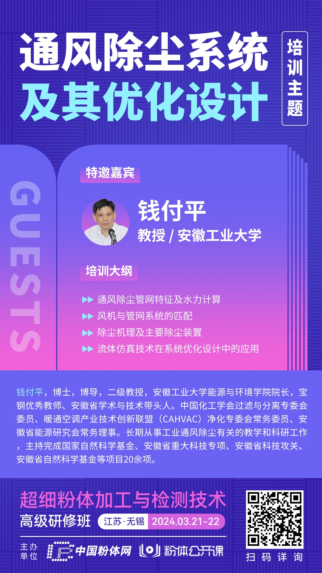 本次培訓班特邀安徽工業(yè)大學錢付平教授帶來《通風除塵系統(tǒng)及其優(yōu)化設計》!歡迎大家積極報名參會學習!
