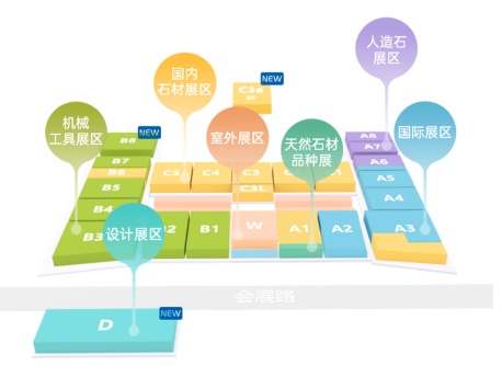 第三屆天然石材品種展,延續(xù)“功能展”定位,幫助買家總覽市場、快速梳理選品思路。300個“當季”品種小方塊,聚焦“新品”、“流行”、“稀缺”,打造“色彩”、“應(yīng)用場景”探展雙線路。