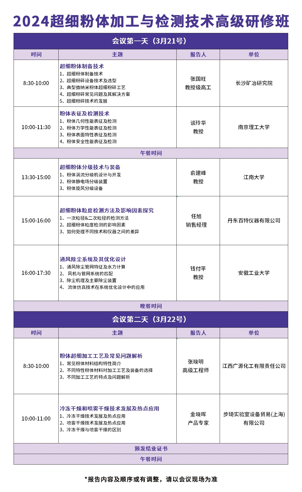 超細粉體加工與檢測技術高級研修班日程公布(無錫3.21-22)