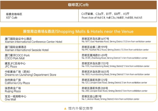美食愉悅身心,逛展之余,也別忘了享受片刻休憩,感受味蕾的關懷! 請查收組委會為大家精心準備的餐飲推薦。