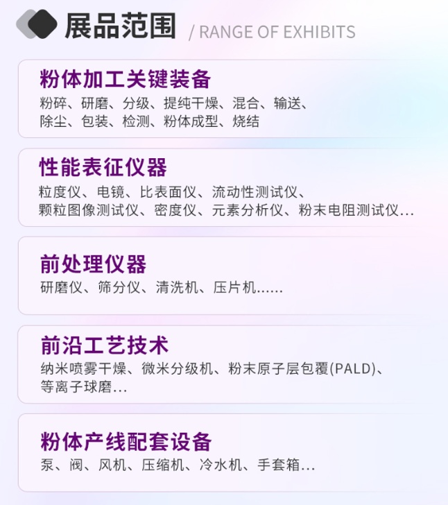 IPIE粉體裝備與儀器展將聚焦“無粉不成材”主題,集中展示粉體材料、粉體工藝及技術、粉體加工關鍵設備、產線配套設備及相關的科學儀器等全產業鏈整體解決方案,匯集行業知名專家/教授、業界龍頭企業、技術專家與企業高管共同參與,是一年一度中國粉體與儀器行業極具影響力的盛會!