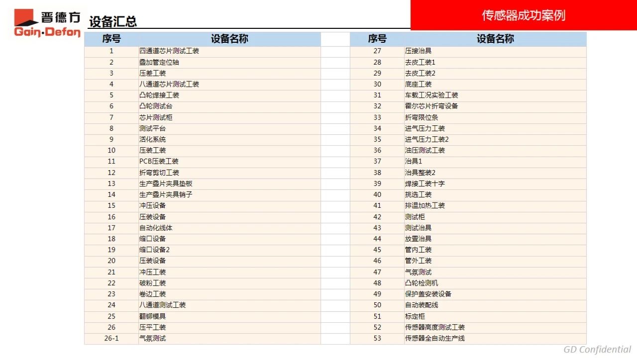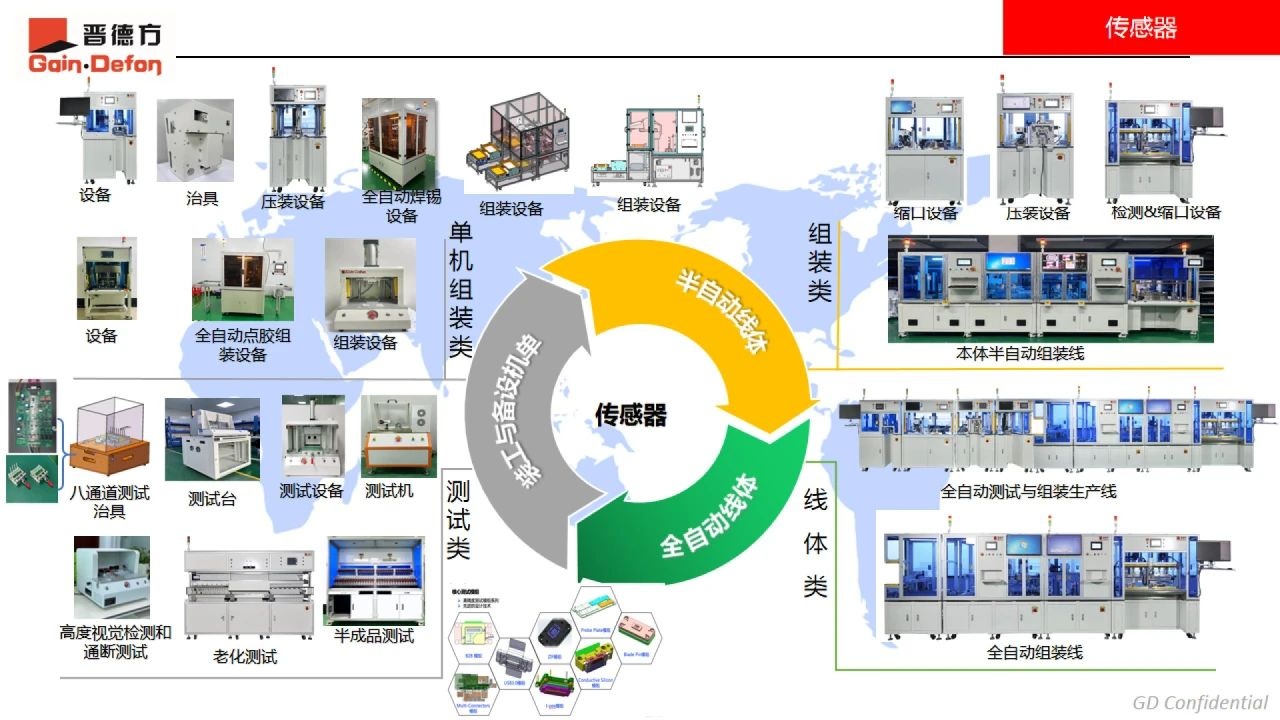 團隊核心成員皆來自于相關行業頭部上市公司;公司研發實力突出,已獲得實用新型專利授權17項、軟著7項,10項發明專利申報中和國家高新技術企業。主營產品:智能傳感器設備和生產線、半導體測試分選設備、精密自動化設備及生產線和智能感知系統及產品的研發和生產等。應用場景:廣泛應用于智能傳感器、半導體、工業自動化生產線等領域。