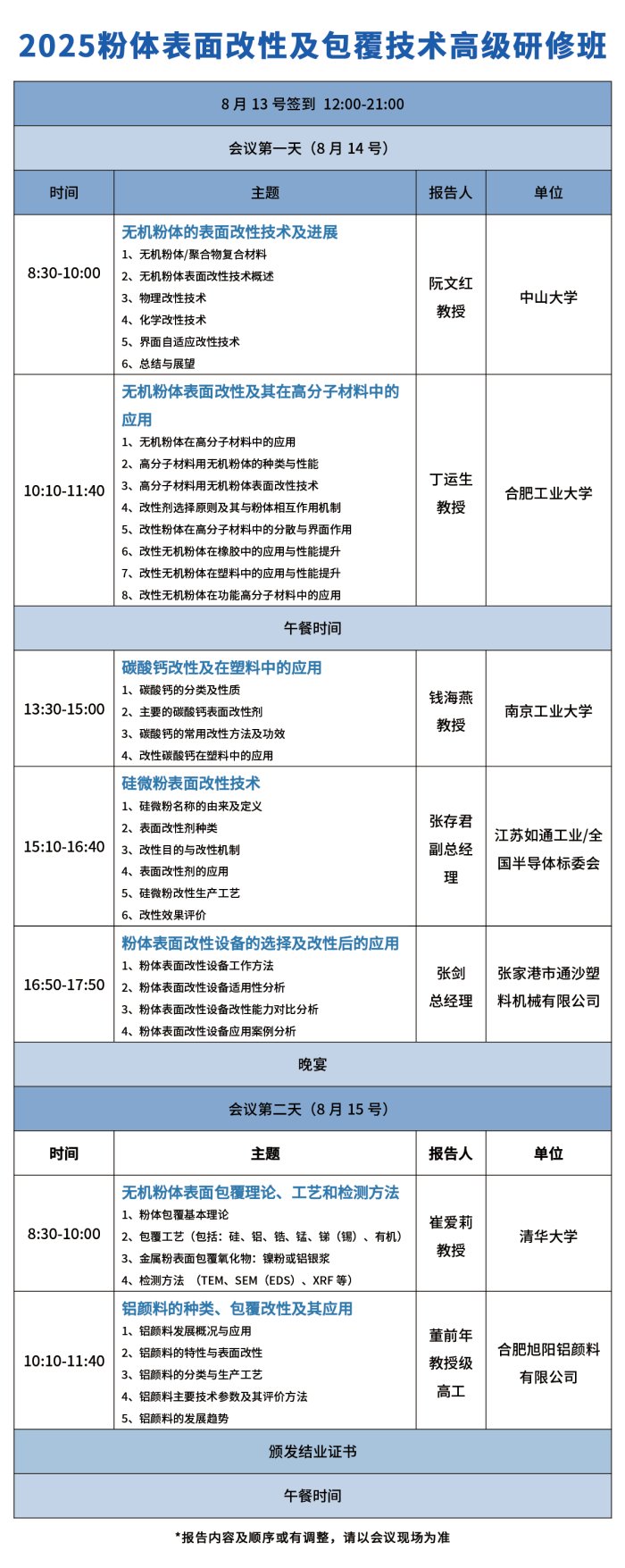 中國粉體網訊 為推動粉體表面改性及包覆技術發展,促進產學研交流合作,中國粉體網粉體公開課將于2025年8月14-15號,在安徽省合肥市舉辦“2025第六屆粉體表面改性及包覆技術高級研修班”,三易(海南)新材料有限公司邀您一同參加!