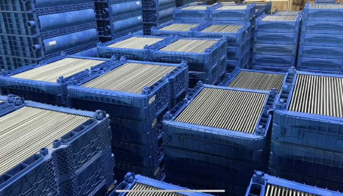 碳化硅平板膜,膜面積可以達(dá)到6平方米/組,多個(gè)組件可以堆成膜塔,堆疊可達(dá)12層,多堆并行布置,節(jié)約占地空間,維護(hù)方便。
