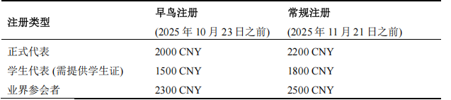 本次會議設有早鳥注冊優惠,請于 2025 年 10 月 23 日前完成注冊以享受優惠價格