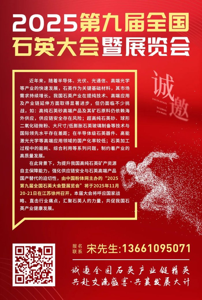 中國粉體網于將于2025年11月20-21號在江蘇省徐州市舉辦“ 2025(第九屆)全國石英大會暨展覽會 ”,新鄉市鼎誠橡塑有限公司邀您一同參加。