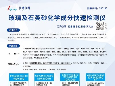 中國粉體網于將于2024年11月21-22號在江蘇省徐州市舉辦“2024(第八屆)全國石英大會暨展覽會”,江蘇天瑞儀器股份有限公司邀您一同參加。展位號:A3公司介紹江蘇天瑞儀器股份有限公司是具有自主知