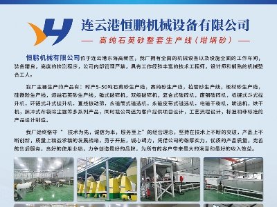 中國粉體網于將于2024年8月9日在江蘇省鹽城市舉辦“2024(第二屆)全國集成電路及光伏用高純石英材料產業發展大會”,連云港恒鵬機械設備有限公司邀您一同參加。展位號:A6企業介紹連云港恒鵬機械設備有
