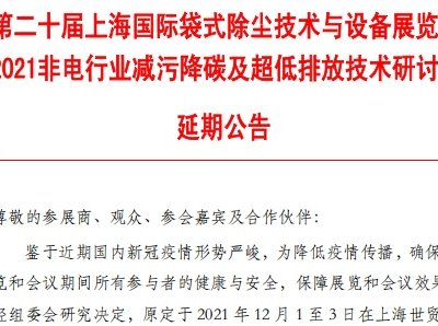 第二十屆上海國際袋式除塵技術與設備展覽會延期公告
