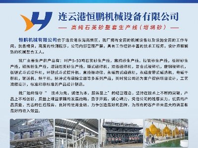 由中國粉體網主辦的“2025第六屆全國板材用石英砂供需洽談會”將于8月8日在山東棗莊舉辦,連云港恒鵬機械設備有限公司邀您一同參加。展位號:A7企業介紹連云港恒鵬機械設備有限公司是一家專業從事高純石英砂