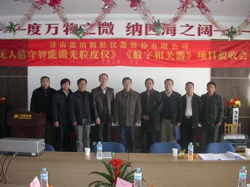 2010年12月2日,濟南市科技局組織有關專家組成驗收組,對濟南微納顆粒儀器股份有限公司承擔的科技計劃項目“數字相關器項目”、“無人值守激光粒度儀”進行了會議驗收。濟南市科技局、財務局相關領導出席會議,驗收委員會由來自山東省計量科學研究院、山東大學、山東建筑大學、濟南大學等單位的專家組成。