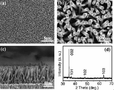 陣列氧化鋅納米膜的SEM照片和XRD衍射圖片