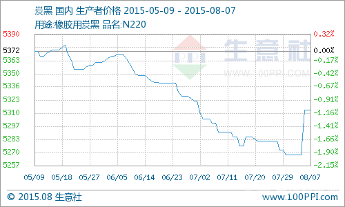 上周初炭黑N220商品指數(shù)為5270,上周末商品指數(shù)為5310,價格指數(shù)較5月18日最高點下調(diào)了1.14%。