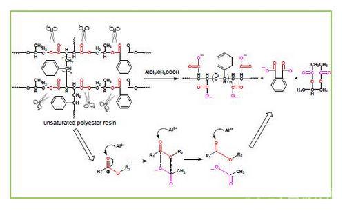 圖2. 選擇性斷裂酯鍵降解回收玻纖/不飽和聚酯復合材料
