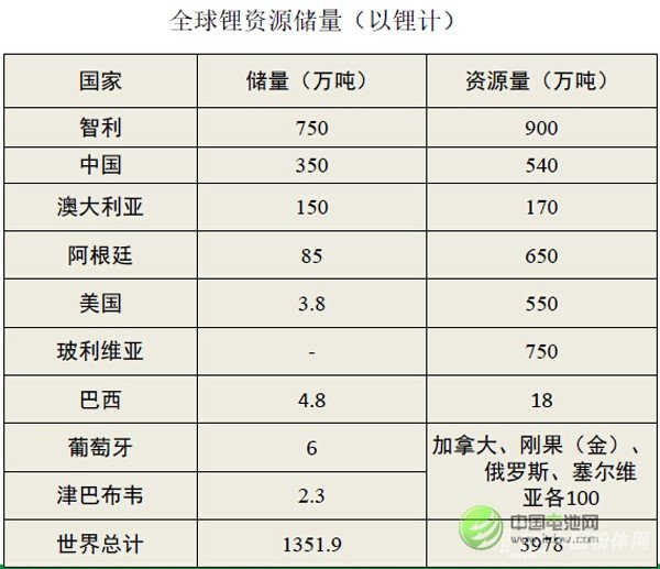 全球鋰資源儲量統計