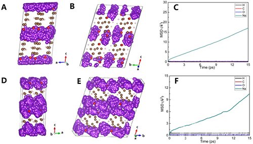 圖6 Na2C6H2O4(ABC)和Na4C6H2O4(DEF)中的鈉離子擴散機理