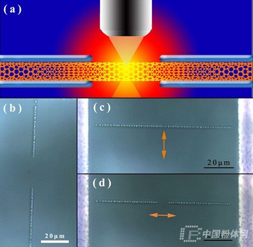 中國粉體網(wǎng)訊    為了研究單根碳納米管的性質(zhì)和器件性能,以及操縱碳納米管從而得到某種特殊的結(jié)構(gòu),人們往往需要在光學(xué)顯微鏡下定位某個碳納米管才能進(jìn)行光譜表征和器件構(gòu)筑。傳統(tǒng)的使用掃描電子顯微鏡來標(biāo)記定位的方法較為繁瑣且易污染碳納米管。納米材料的光學(xué)可見化可以滿足人們的需求。而已有的在碳納米管表面沉積金屬或氧化物納米顆粒的方法,雖然實(shí)現(xiàn)了光學(xué)顯微鏡下的可見化,卻可能導(dǎo)致碳納米管的性能退化,不利于碳納米管本征物性的探索。
