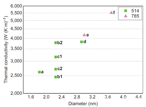 基于部分懸空的超長碳納米管,通過形成冰-碳納米管微米級直徑異質(zhì)殼芯結(jié)構(gòu),使納米級直徑碳納米管的構(gòu)型在光學(xué)顯微鏡下可見。通過使用不同偏振激光照射該異質(zhì)殼芯結(jié)構(gòu),根據(jù)不同的表面冰層消失現(xiàn)象和電子衍射確定的碳納米管手性,系統(tǒng)研究了單根碳納米管的光吸收截面問題;谶@種激光誘導(dǎo)的部分融化現(xiàn)象,建立了分段的一維穩(wěn)態(tài)熱傳導(dǎo)方程,利用通過碳納米管拉曼g模紅移確定的激光光斑邊緣位置的溫度,以及冰層邊界不變的冰的融化溫度作為邊界條件,結(jié)合碳納米管的幾何信息,計算得到不同手性的超長懸空碳納米管的軸向熱導(dǎo)率在2000-6000wk-1m-1范圍,接近于理論計算值。相關(guān)研究結(jié)果發(fā)表在(npg)light:science&applications(2015,4,e318;doi:10.1038/lsa.2015.91)上。
