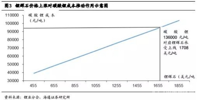 下游新能源整車成本占比不大。碳酸鋰成本一般體現在正極材料和電解液中,按照13萬元/噸價格(2015年底)計算的話,占車用鋰電池單元成本的11%左右,占電池組的8%左右,整車的4%左右,比例較小。