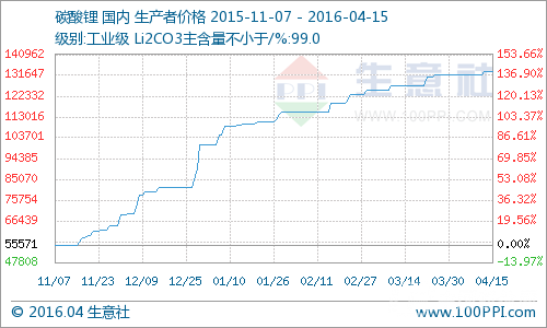 據生意社價格監測:上周國內碳酸鋰成交價格穩步上行。工業級碳酸鋰均價133200元/噸,較之前一周漲幅達0.91%;電池級碳酸鋰均價171000元/噸,較之前一周漲幅達1.99%。