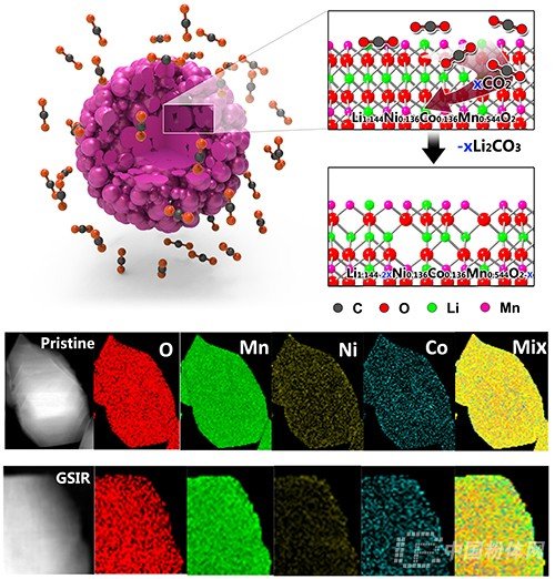 2013年,該研究團隊發(fā)展了一種新穎的氣固界面改性(CN201310416745.1,PCT/CN2013/088597),讓富鋰錳基正極材料顆粒表面形成均勻氧空位,從而大大提高了該材料的首次充放電效率、放電比容量和循環(huán)穩(wěn)定性。此后,他們與國內(nèi)外多個研究團隊合作和協(xié)同創(chuàng)新,利用各種先進的分析表征手段和理論計算,研究了氧空位存在下的鋰離子脫嵌機制。其中,布魯克海文國家實驗室(BNL)教授朱溢眉、吳力軍等利用先進透射電鏡觀察到氧空位,加州大學(xué)圣地亞哥分校(UCSD)教授孟穎課題組利用橡樹嶺國家實驗室的中子衍射證明了晶格氧空位的存在,德國明斯特大學(xué)博士王軍利用原位電化學(xué)氣相質(zhì)譜研究了充放電過程中晶格氧的變化,邱報利用上海同步輻射光源的X射線衍射/吸收光譜證明了氧空位并不改變材料晶體結(jié)構(gòu),孟穎課題組博士張明浩還通過DFT理論計算發(fā)現(xiàn)氧空位提高了材料晶格氧的活性。該研究工作發(fā)表在Nature Communications 2016, 7, 12108,得到了審稿人的高度評價。該工作首次提出了通過提高晶格氧的活性來改善富鋰錳基正極材料的首次充放電效率和倍率性能,為該材料改性研究提供了新思路。此外,該氣固界面改性方法相對簡單、可控且易實現(xiàn)工程化,這為高性能富鋰錳基正極材料的工程化開發(fā)提供了新途徑。目前,該研究團隊正在利用此改性方法著力推進富鋰錳基正極材料的中試開發(fā)。