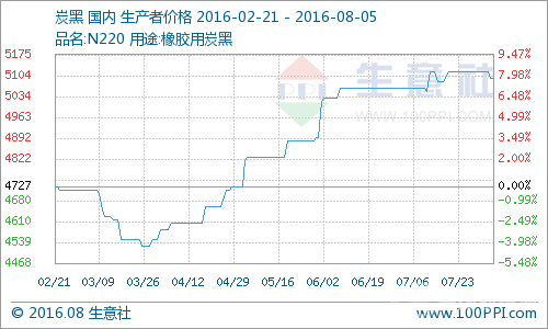 根據生意社數據監測顯示炭黑N220型號價格走勢如下: